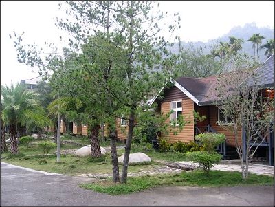 北港溪溫泉山莊園內遍直松樹,與小木屋相互輝映,景色宜人,值得品味!(攝影/clare)