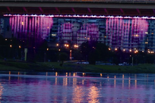 大直橋旁的數位水幕,入夜後讓遊客飽覽魔幻般的視覺體驗。(王能佑/攝影)
